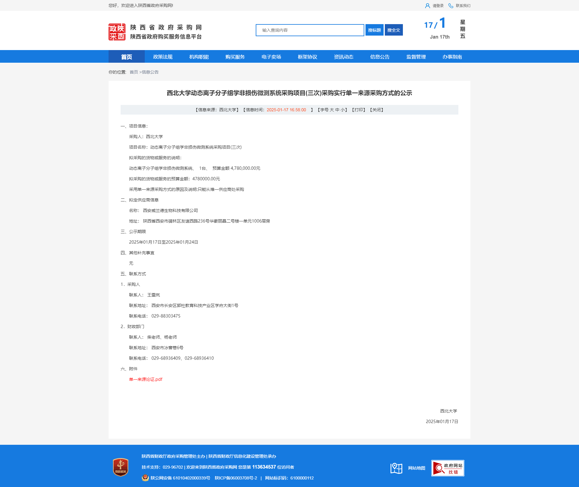 原公告链接:http://www.ccgp-shaanxi.gov.cn/freecms/site/shaanxi/ggxx/info/2025/8a69c617941d4b230194736c2f3223ec.html?noticeType=001051&noticeId=d735ebaf-d4b2-11ef-8063-08c0eb20c666