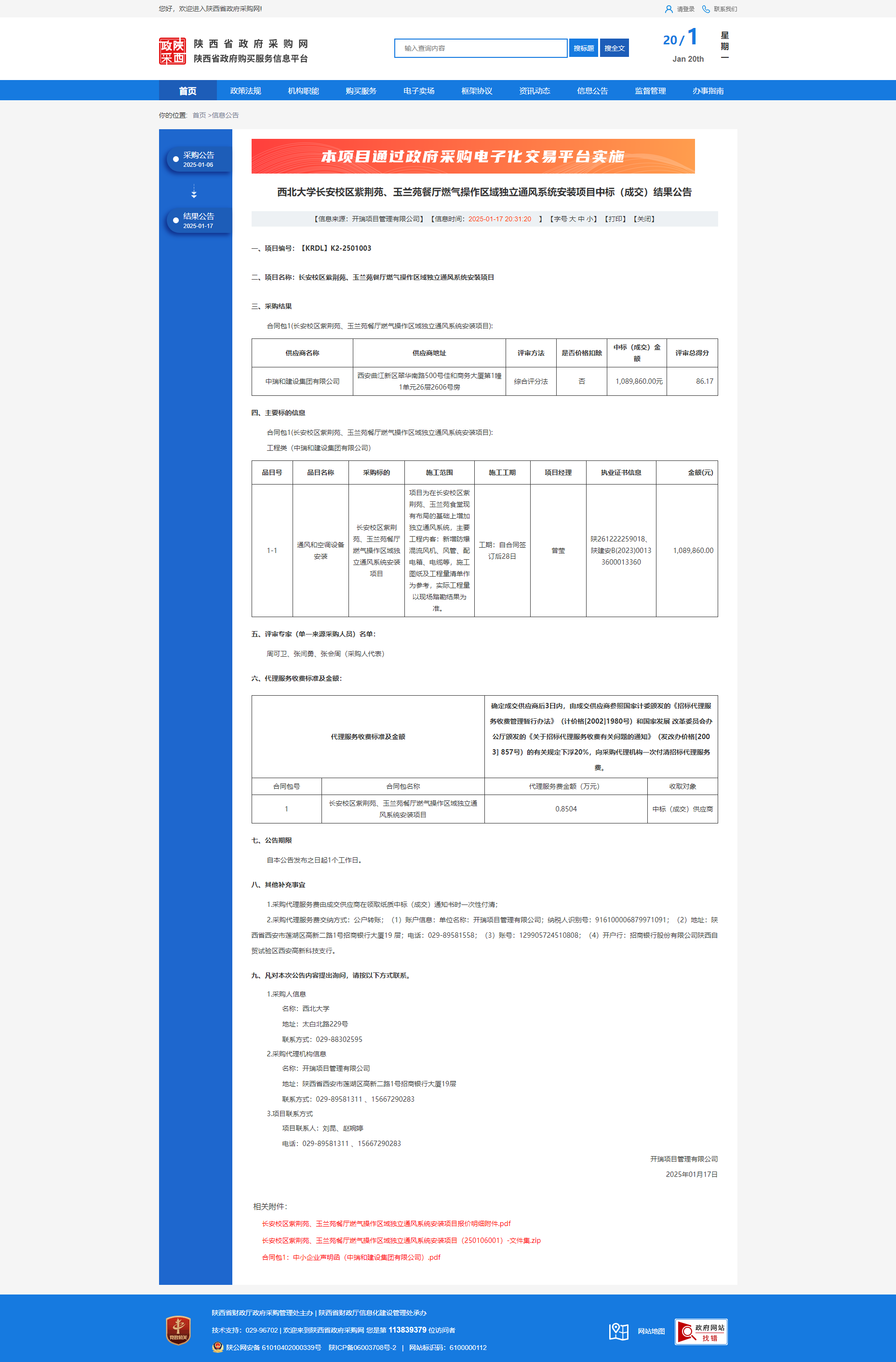 乐投平台长安校区紫荆苑、玉兰苑餐厅燃气操作区域独立通风系统安装项目中标(成交)结果公告