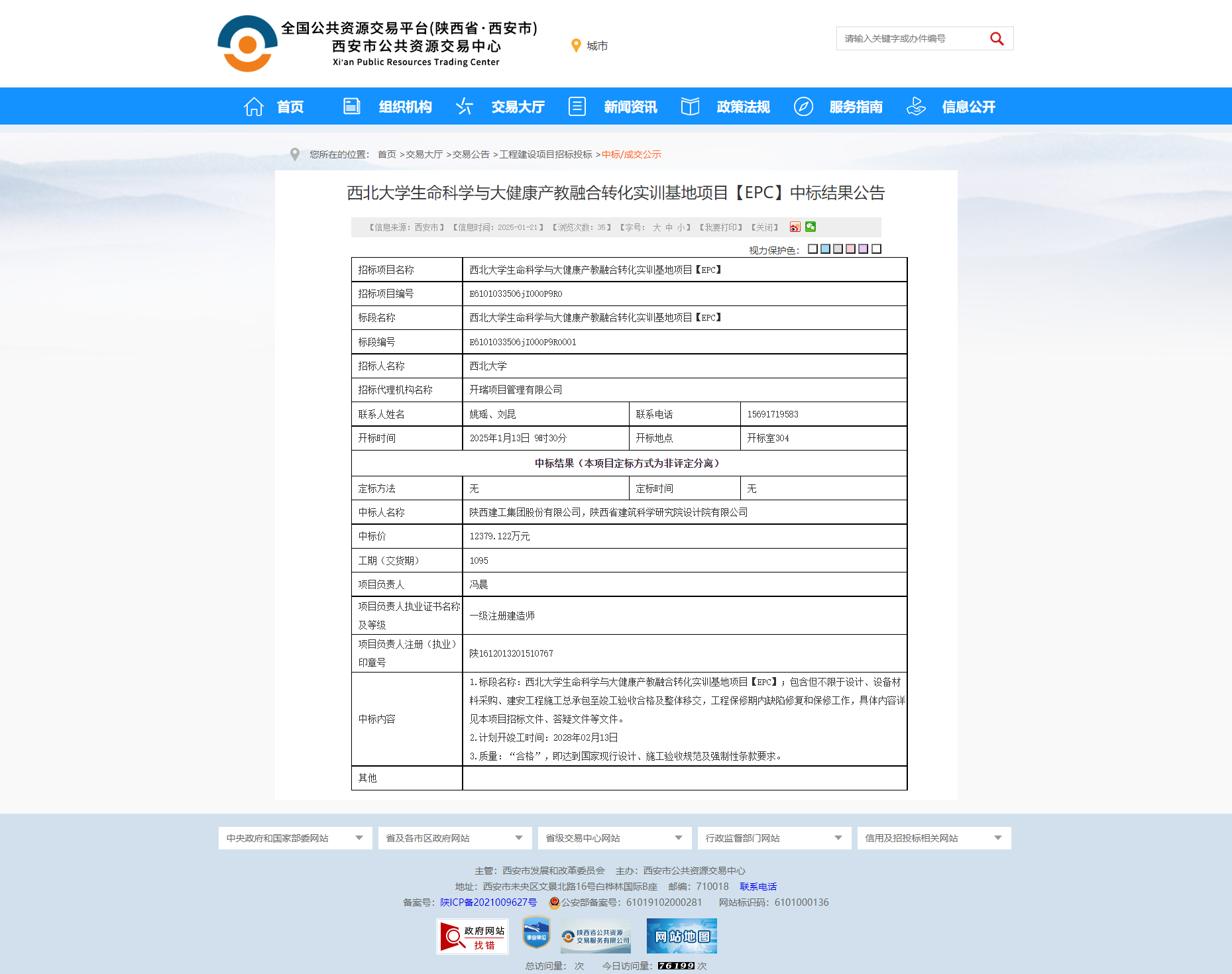 乐投平台生命科学与大健康产教融合转化实训基地项目【EPC】中标结果公告