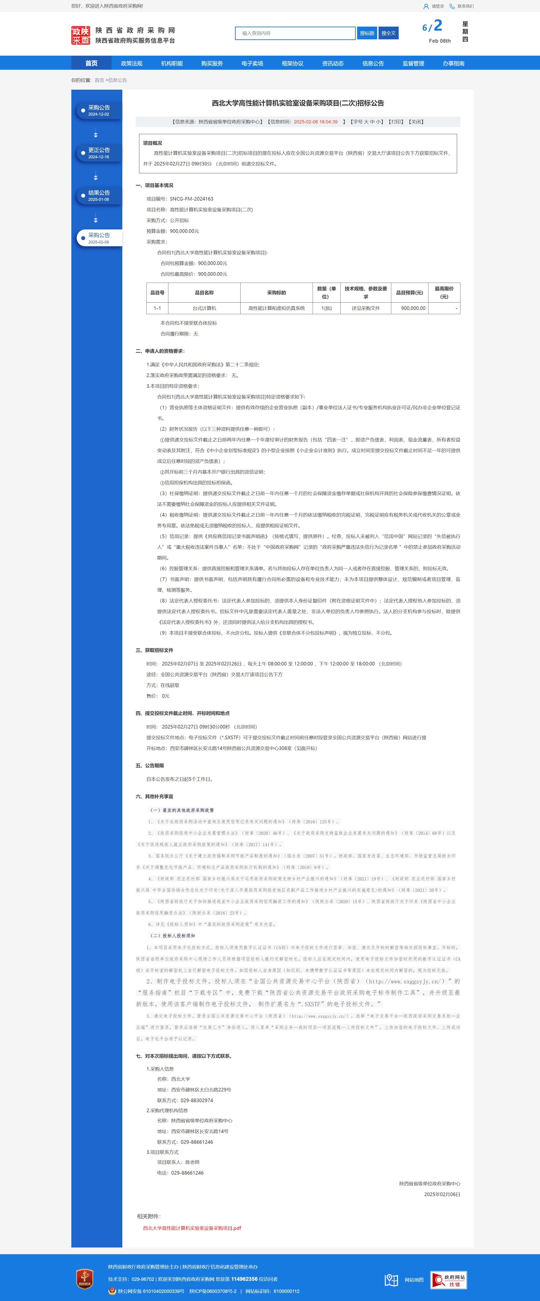 乐投平台高性能计算机实验室设备采购项目(二次)招标公告 作者: 编辑:薛利娟 时间:2025-02-06 原公告链接:https://www.ccgp-shaanxi.gov.cn/freecms/site/shaanxi/ggxx/info/2025/8a69c97494792d530194d955079d37f3.html?noticeType=001011¬iceId=813dda34-e473-11ef-8063-08c0eb20c666