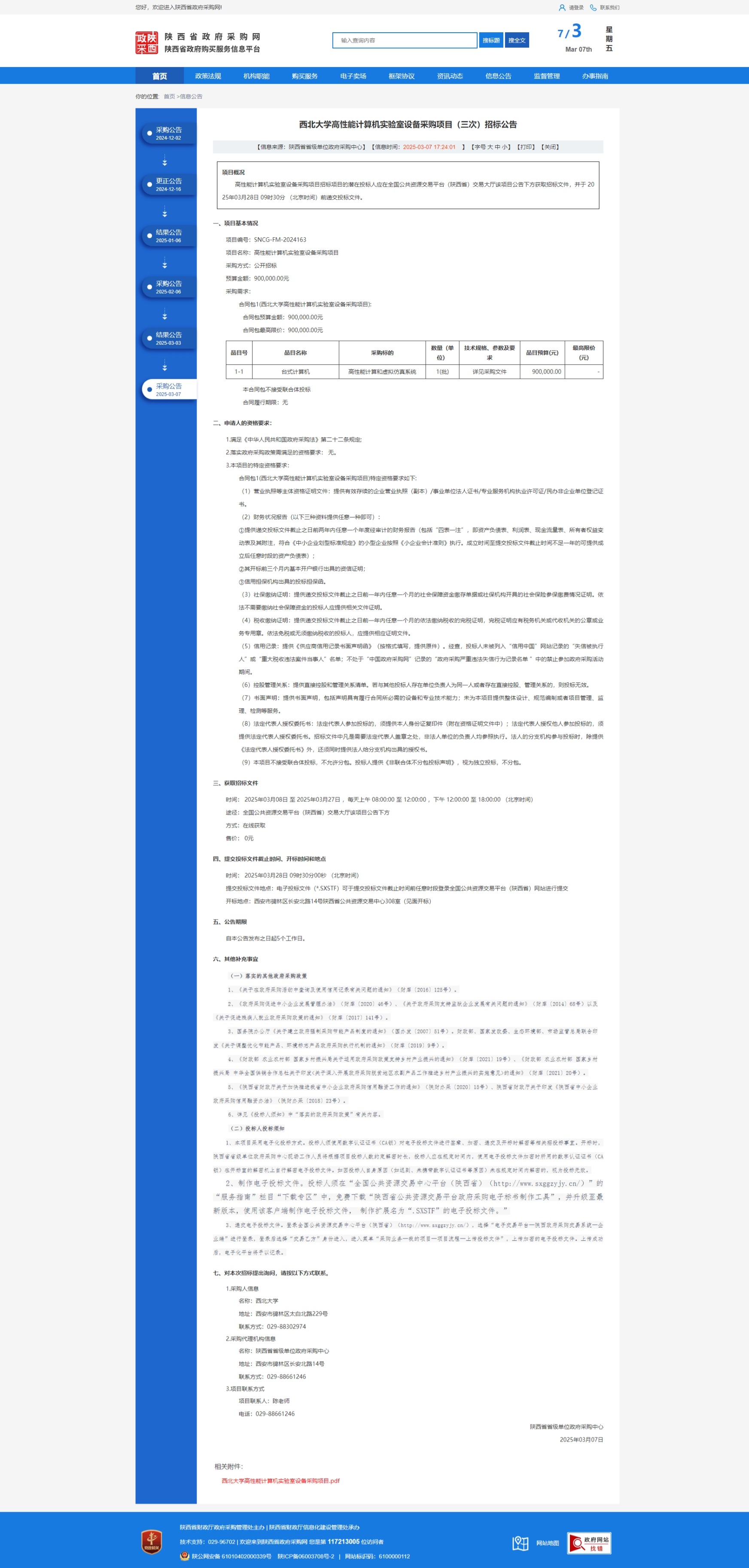 乐投平台高性能计算机实验室设备采购项目(三次)招标公告 作者: 编辑: 时间:2025-03-07 原公告链接:https://www.ccgp-shaanxi.gov.cn/freecms/site/shaanxi/ggxx/info/2025/8a69c5d99566cd8a019569705d412ddb.html?noticeType=001011¬iceId=b05e7c10-fb37-11ef-8063-08c0eb20c666