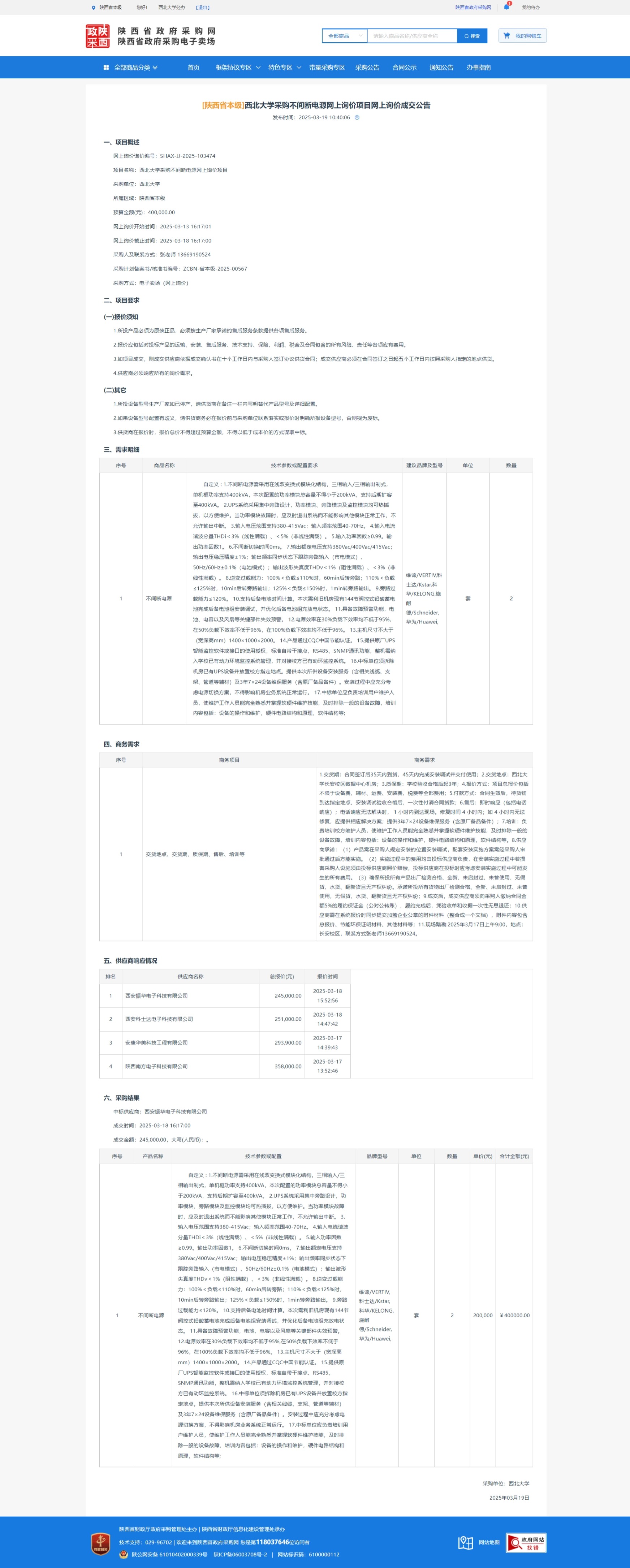 乐投平台采购不间断电源网上询价项目网上询价成交公告 作者: 编辑:采购与招标办公室 时间:2025-03-19 原公告链接:https://www.ccgp-shaanxi.gov.cn/gpmall-main-web/basic/noticeDetail?noticeGuid=7301336059869331456