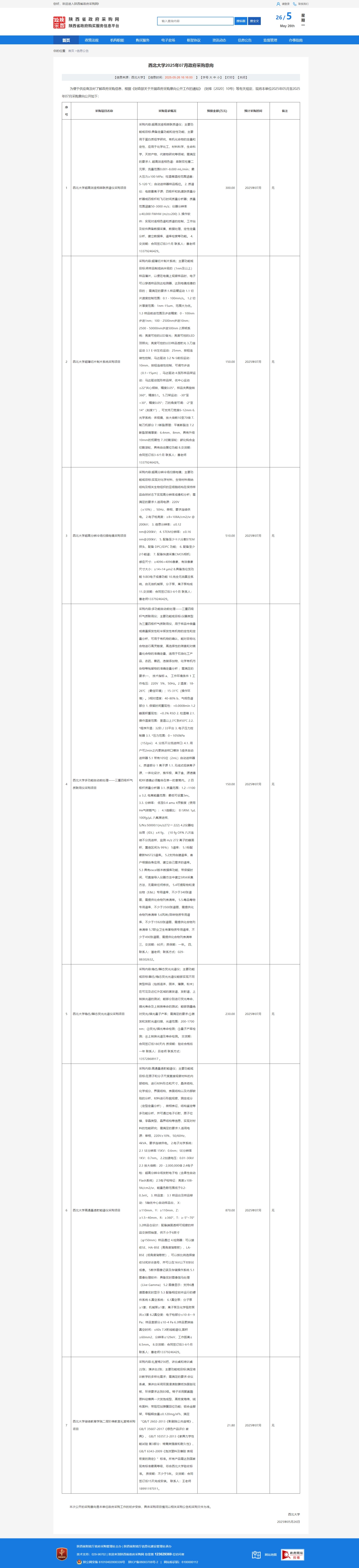 乐投平台2025年07月政府采购意向(化工学院等) 作者: 编辑:采购与招标办公室 时间:2025-05-26 原公告链接:https://www.ccgp-shaanxi.gov.cn/freecms/site/shaanxi/ggxx/info/2025/8a69c8d196ce440a01970b48aca86f44.html?noticeType=59¬iceId=959b39bb-3a0b-11f0-8063-08c0eb20c666