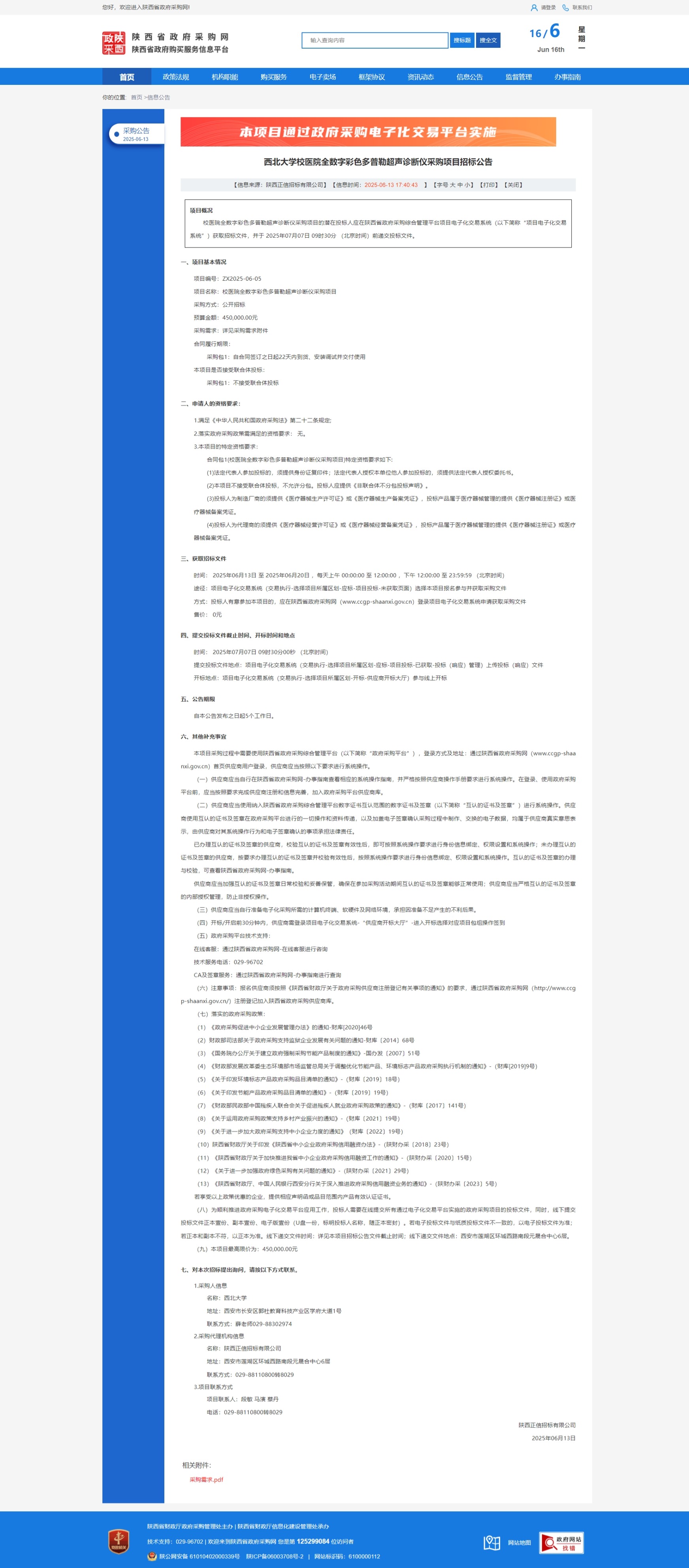 乐投平台校医院全数字彩色多普勒超声诊断仪采购项目招标公告 作者: 编辑:采购与招标办公室 时间:2025-06-16 原公告链接:https://www.ccgp-shaanxi.gov.cn/freecms/site/shaanxi/ggxx/info/2025/8a69c6749714a43701976892e3823fce.html?noticeType=001011¬iceId=6edbc741-483c-11f0-8063-08c0eb20c666
