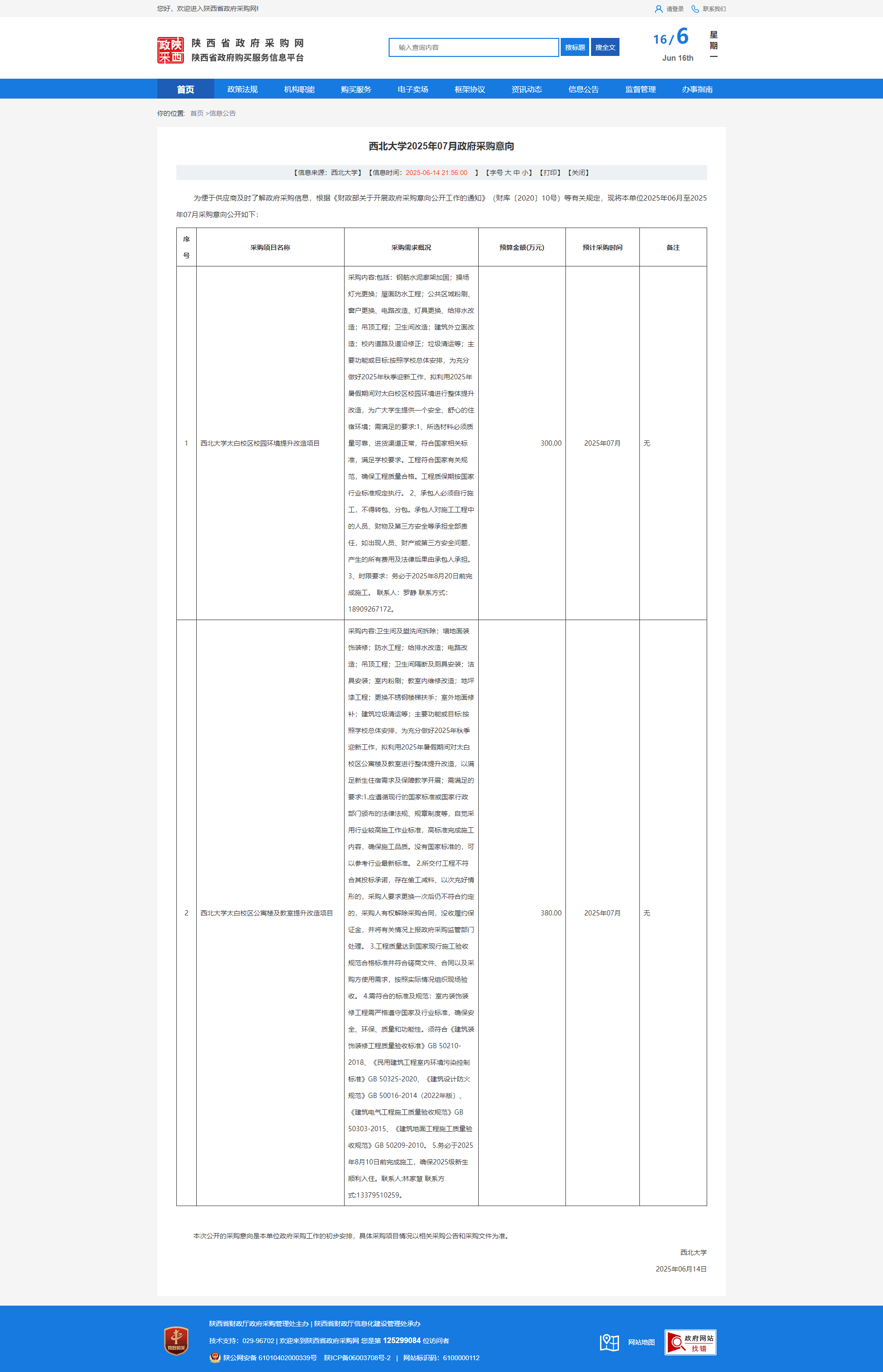 乐投平台2025年07月政府采购意向