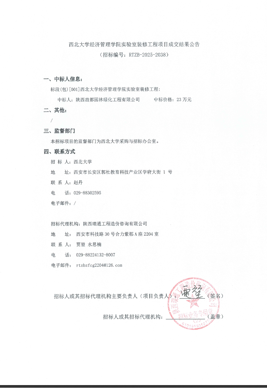 乐投平台经济管理学院实验室装修工程项目成交结果公告
