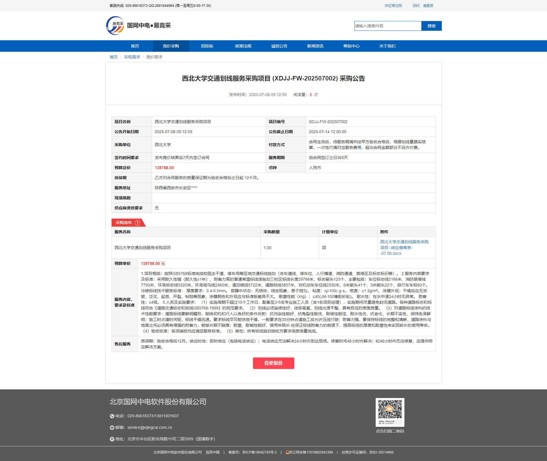乐投平台交通划线服务采购项目 (XDJJ-FW-202507002) 采购公告
