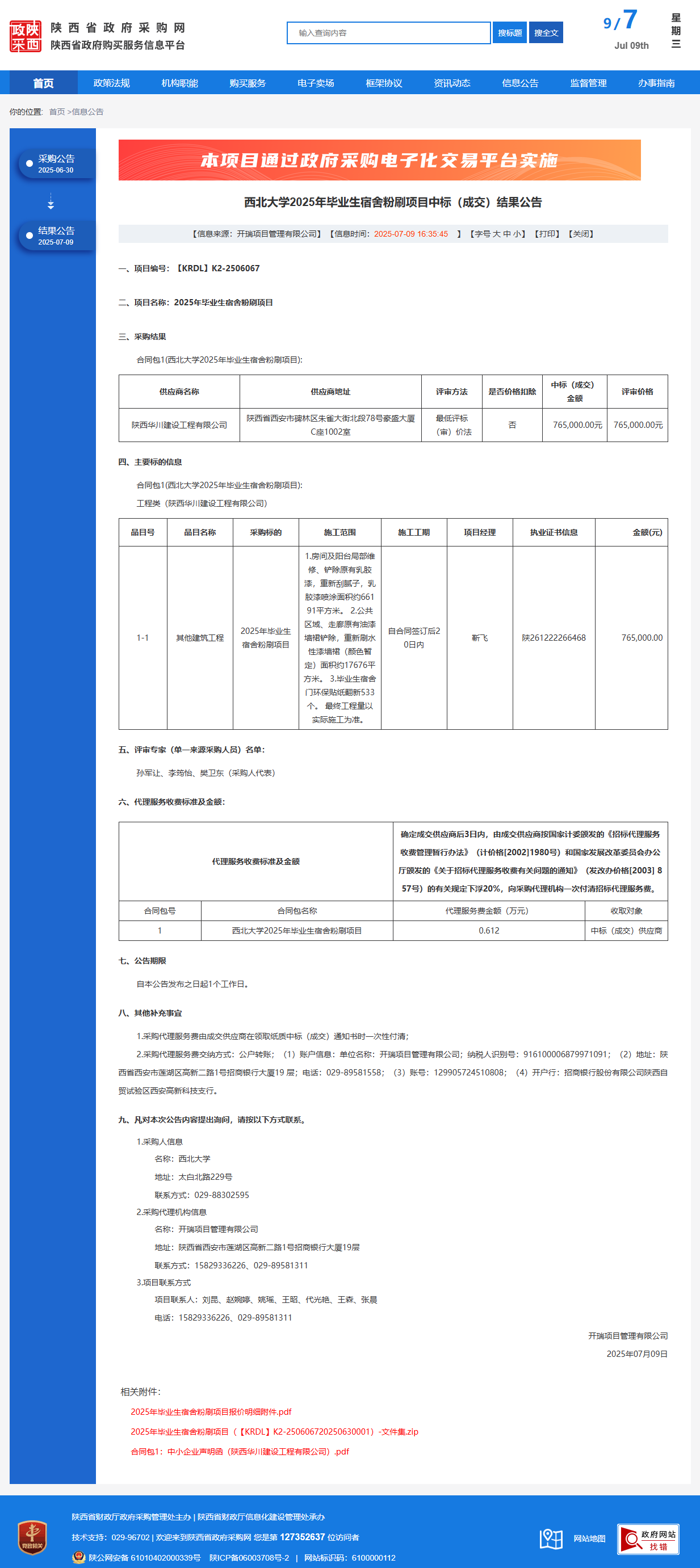 乐投平台2025年毕业生宿舍粉刷项目中标(成交)结果公告