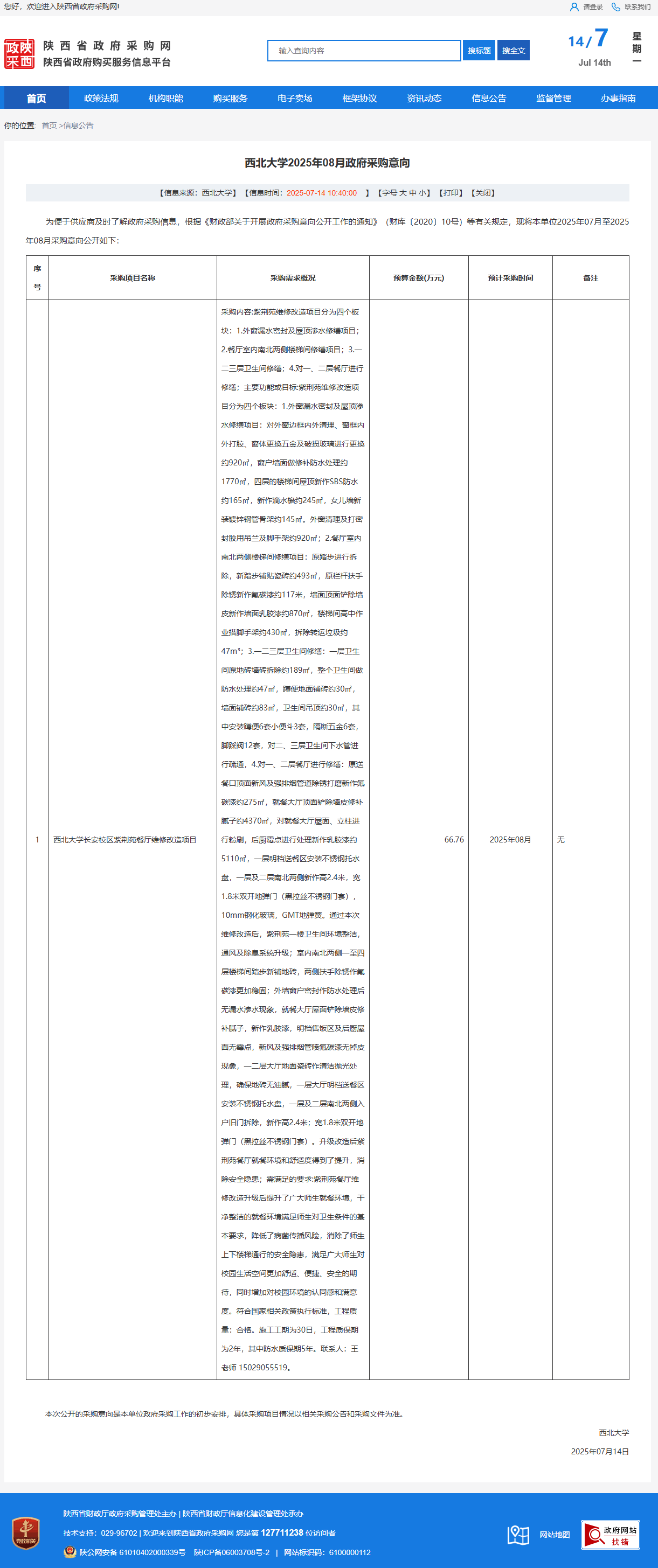 乐投平台2025年08月政府采购意向