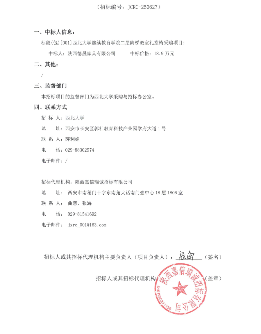 乐投平台继续教育学院二层阶梯教室礼堂椅采购项目成交结果公告 作者: 编辑:采购与招标办公室 时间:2025-07-14 原公告链接:http://bulletin.sntba.com/resultBulletin/2025-07-14/2078964.html