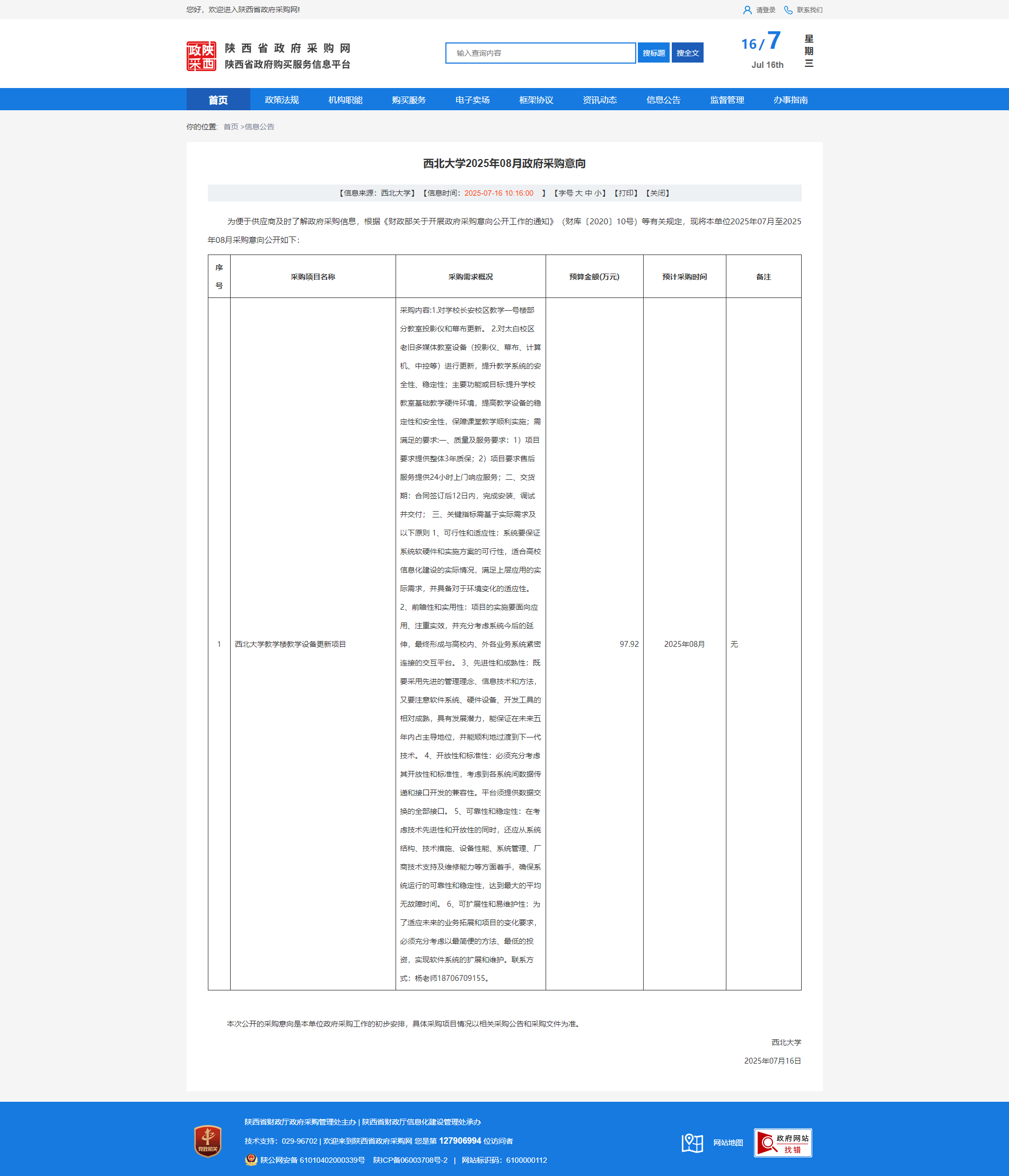 乐投平台2025年08月政府采购意向