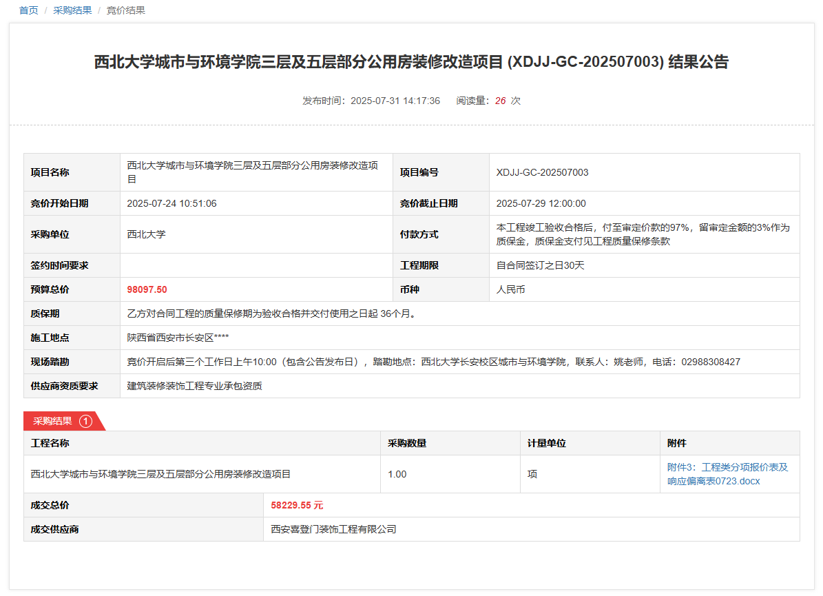 乐投平台经济管理学院mba9804班智慧教室设备采购项目 (XDJJ-HW-202507005) 竞价结果公告