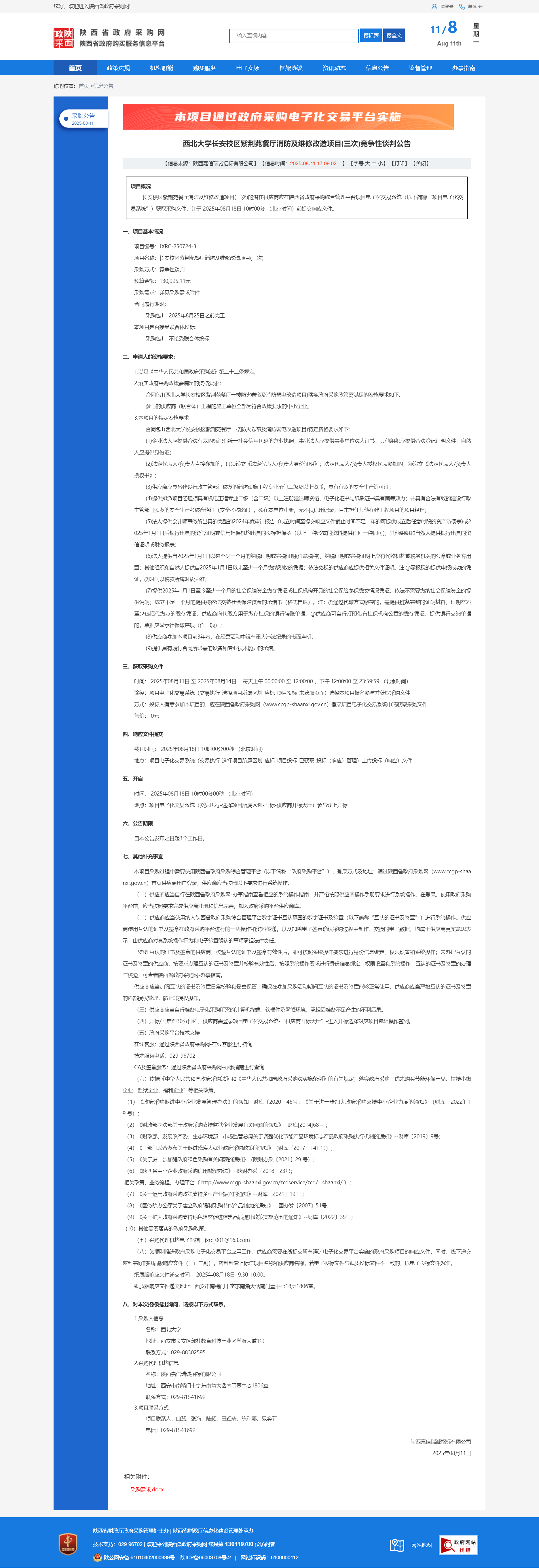 乐投平台长安校区紫荆苑餐厅消防及维修改造项目(三次)竞争性谈判公告