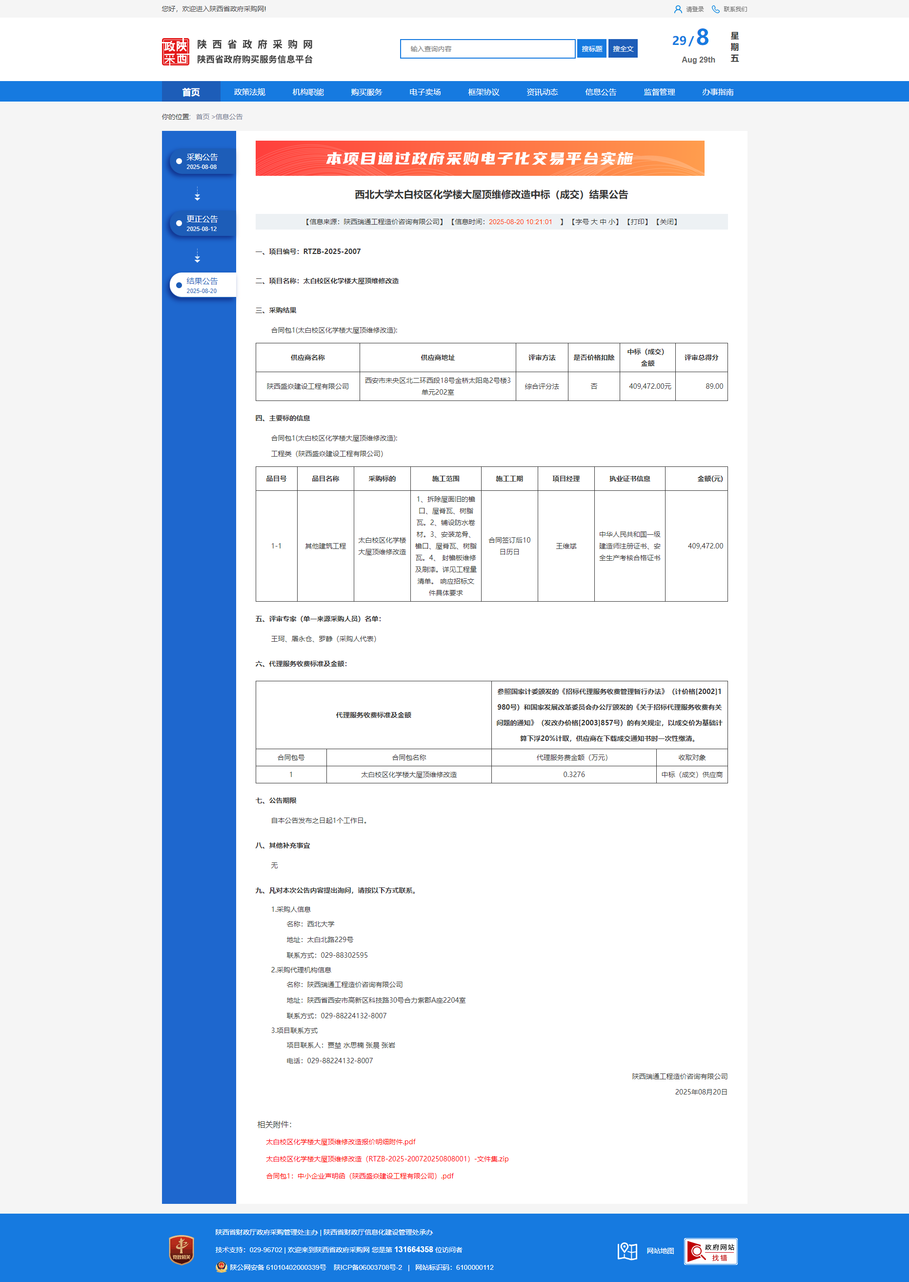 乐投平台太白校区化学楼大屋顶维修改造中标(成交)结果公告