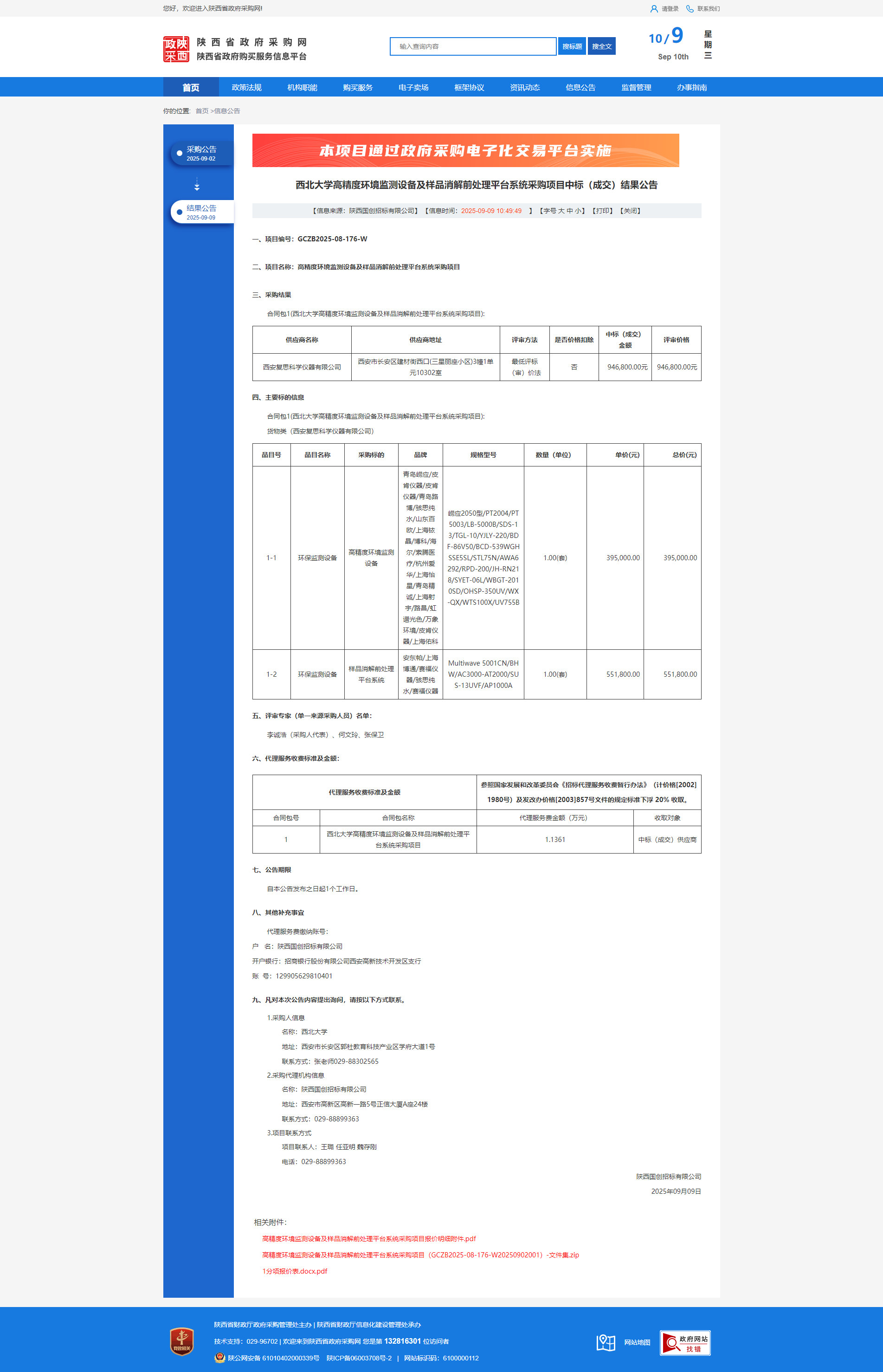 乐投平台高精度环境监测设备及样品消解前处理平台系统采购项目中标(成交)结果公告