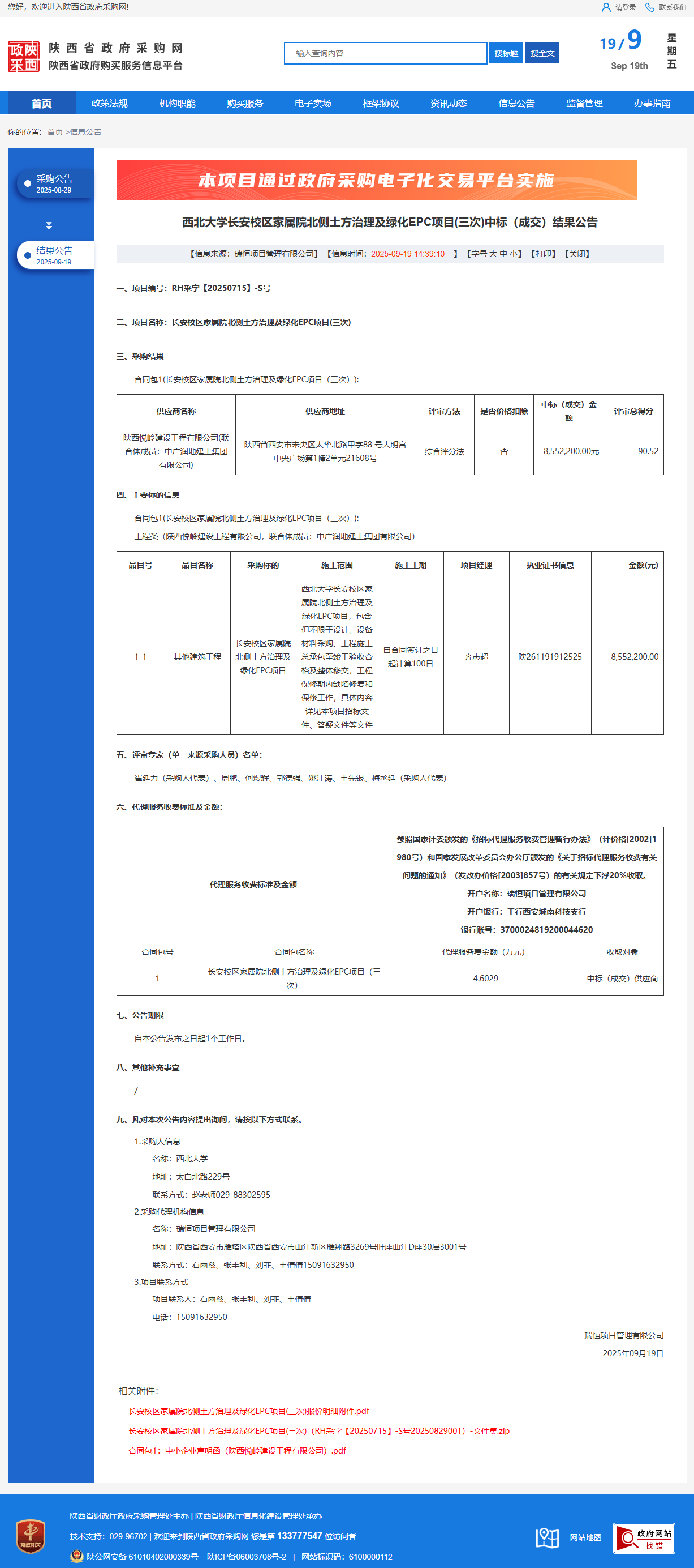 乐投平台长安校区家属院北侧土方治理及绿化EPC项目(三次)中标(成交)结果公告