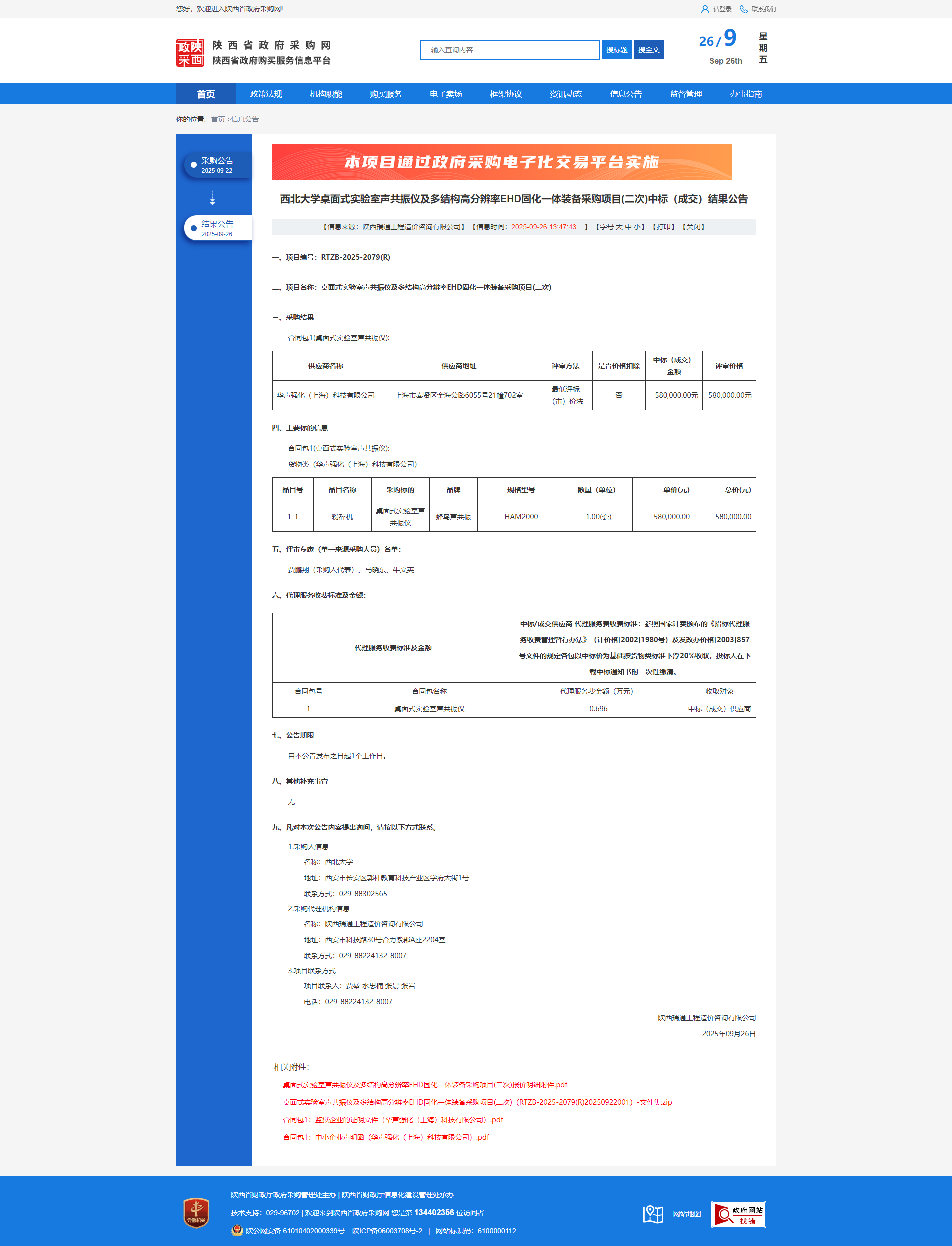 乐投平台桌面式实验室声共振仪及多结构高分辨率EHD固化一体装备采购项目(二次)中标(成交)结果公告