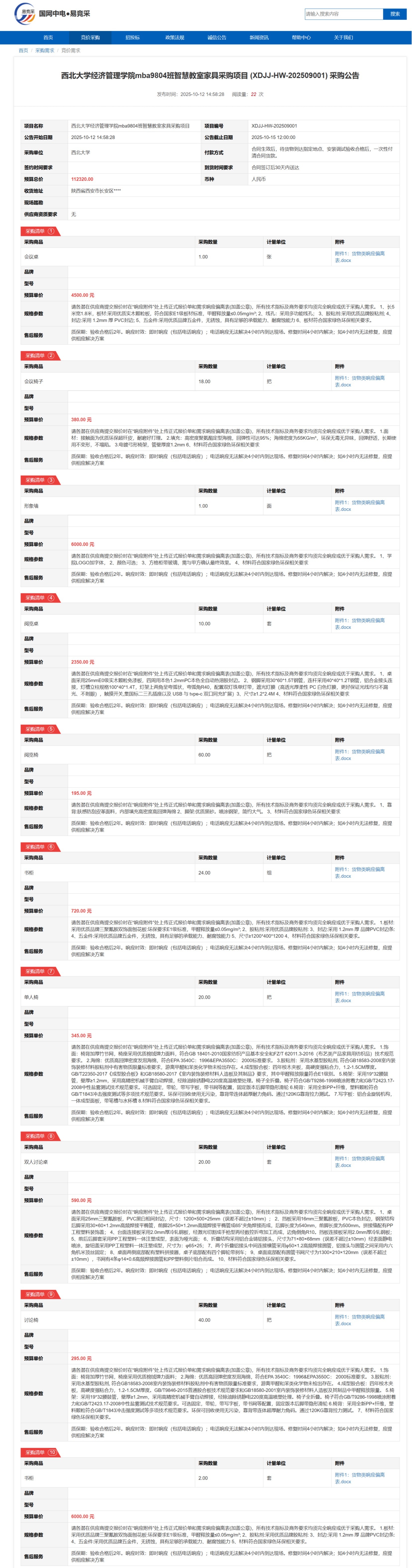 乐投平台经济管理学院mba9804班智慧教室家具采购项目(XDJJ-HW-202509001)竞价采购公告