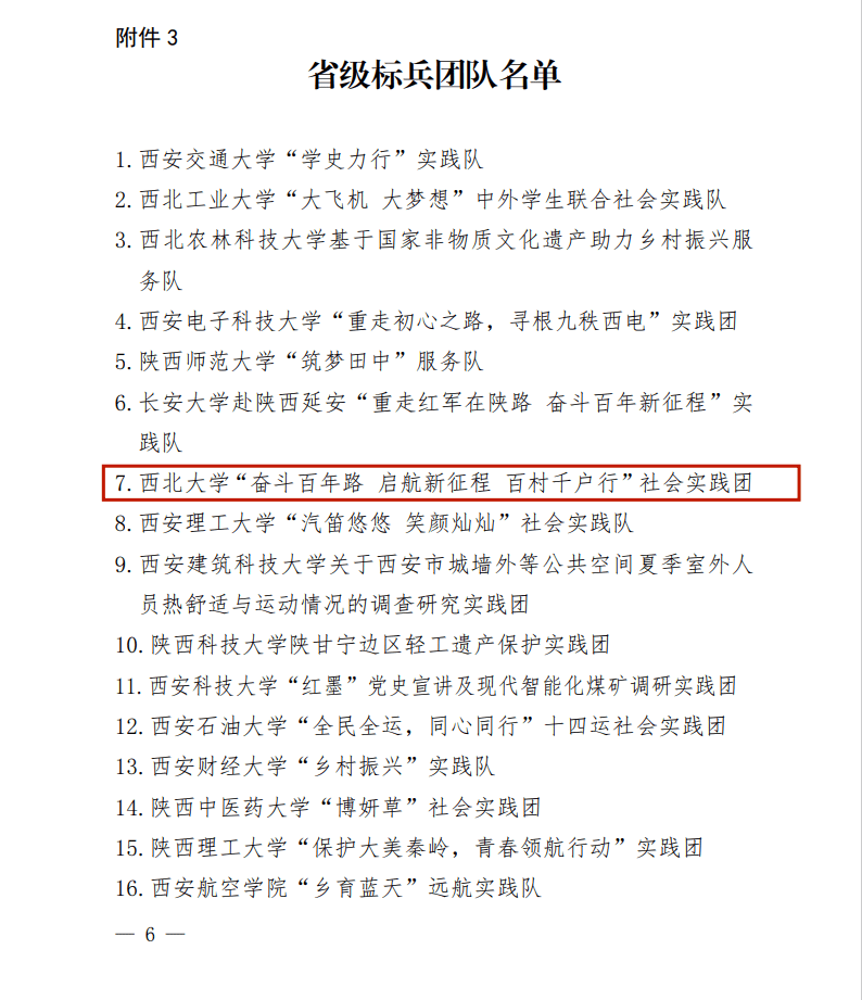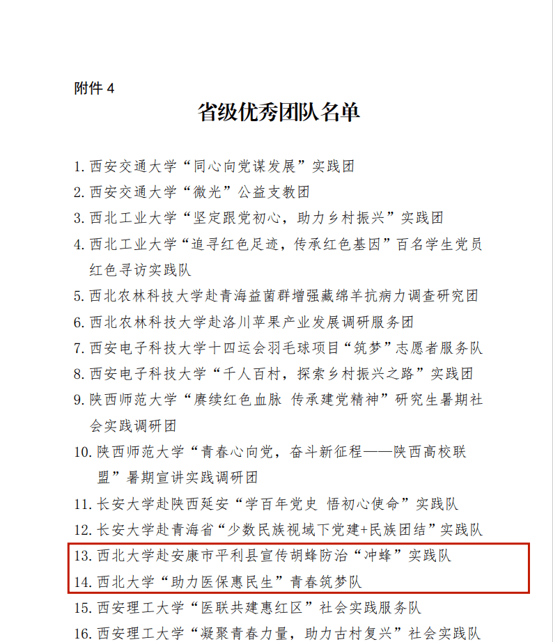 近日,中共陕西省委宣传部、中共陕西省委文明办、中共陕西省委教育工委、共青团陕西省委、陕西省学生联合会印发《关于2021年陕西省大中专学生志愿者暑期文化科技卫生“三下乡”社会实践活动先进集体、先进个人的通报》,乐投平台荣获2021年“三下乡”省级示范学校荣誉称号。经济管理学院“奋斗百年路启航新征程百村千户行”社会实践团荣获“省级标兵团队”荣誉称号。生命科学学院赴安康市平利县宣传胡蜂防治“冲蜂”实践队、公共管理学院“助力医保惠民生”青春筑梦队荣获“省级优秀团队”荣誉称号。乐投平台翟绍果、范铭沁、张桥三位老师荣获“省级先进个人”荣誉称号。