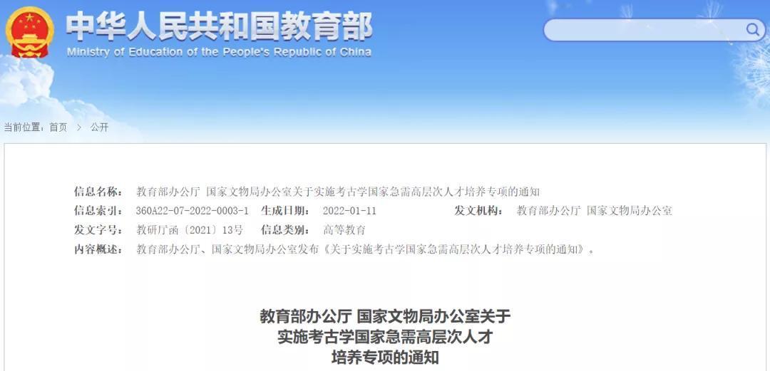 近日,教育部发布《教育部办公厅国家文物局办公室关于实施考古学国家急需高层次人才培养专项的通知》,乐投平台入选考古学国家急需高层次人才培养专项高校名单,全国共有 13所高校和16个联合培养单位入选。