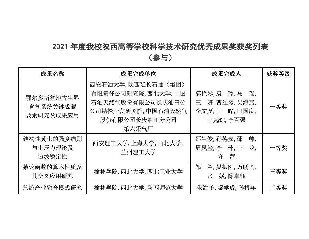 乐投平台多项成果获2022年度陕西高等学校科学技术研究优秀成果奖 作者: 编辑:张邓斓 时间:2022-04-12 3月23日,《陕西省教育厅关于公布2022 年度陕西高等学校科学技术研究优秀成果奖的通报》发布,乐投平台主持和参与的成果共有17项获奖,主持的成果共有13项获奖,其中特等奖1项,一等奖7项,二等奖2项,三等奖2项,科普奖1项;参与的成果共有4项获奖,其中一等奖2项,三等奖2项。是近三年乐投平台在省教育厅奖中取得的最好成绩。 此次全省共评选出2022 年度陕西高等学校科学技术研究优秀成果奖获奖成果360项,其中特等奖27项、一等奖132项、二等奖155项、三等奖41项、科普奖5项。