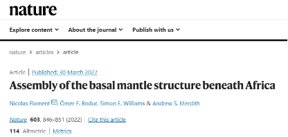 乐投平台与澳大利亚、英国科研机构合作,于伦敦时间2022年3月30日在国际著名期刊Nature发表题为Assembly of the basal mantle structure beneath Africa的文章。该文章由乐投平台地质学系Simon Edward Williams教授与澳大利亚卧龙岗大学Nicolas Flament博士和Ömer F. Bodur博士以及英国利兹大学Andrew S. Merdith博士合作发表,Simon Edward Williams教授为第三作者。