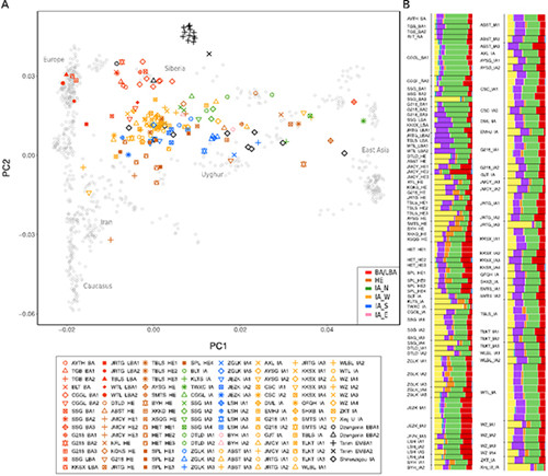 项目获取的天山东西部古人群的线粒体与核基因组分布图。 乐投平台供图