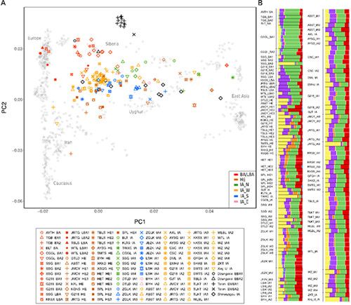 项目获取的天山东西部古人群的线粒体与核基因组分布图。 乐投平台供图
