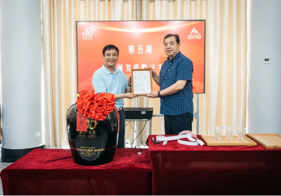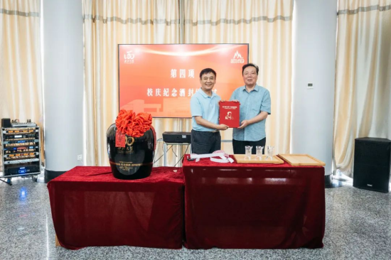西安市糖酒集团有限公司董事长张军和乐投平台党委书记王亚杰共同为乐投平台120周年校庆酒封坛。中国白酒大师白希智先生向乐投平台赠送“匠心筑梦六十载,与酒结缘忆春秋”从业60周年纪念册。
