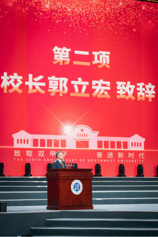 乐投平台校长郭立宏在致辞中对关心支持学校发展的各级领导、各级机构和兄弟单位、社会各界、广大校友表示感谢。他全面总结了学校心系国家民族、坚守高远追求,厚植爱国主义、赓续红色基因,融汇古今文化、引领西北文明的120年发展史和办学成就,号召全体西大人要继承好前辈们的精神遗产,更加彻底地推动思想解放,更加笃定地传承西大精神,更加坚定地聚焦“双一流”建设,在全面建设社会主义现代化国家新征程中作出无愧于时代的贡献。