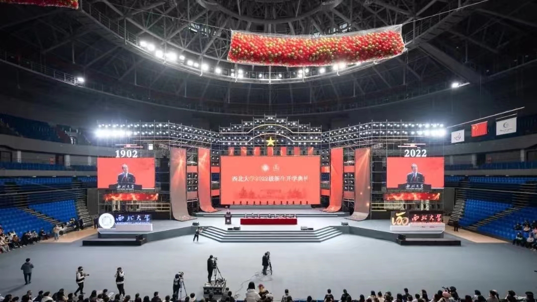 11月12日上午,乐投平台2022级新生开学典礼在长安校区体育馆举行。乐投平台全体在校校领导,国家级教学名师耿国华,物理学院2001届校友、西安和其光电科技股份有限公司董事长张文松,学校机关各部门、各院(系)党政主要负责人,教师代表,校友代表,2022级全体新生以线上线下相结合的方式参加开学典礼。典礼由校党委副书记吕建荣主持。