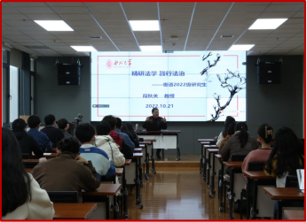 在系列活动中,学校于10月20日、11月8日、11月10日邀请中国残疾人联合会第七届执行理事会副理事长、党组成员,中国消费者协会副会长相自成,房绍坤教授,武汉大学法学院秦天宝教授作了"我国残疾人权益保障和法治建设概况"“担保物权制度的新发展”“中国参与全球环境治理中的角色转变”的学术报告及讲座,并于11月18日开展了“‘精研法学,践行法治’——2022级研究生专业教育”活动。10月31日至11月8日,乐投平台开展了20场“精研法学,践行法治”法律专题学术汇报。