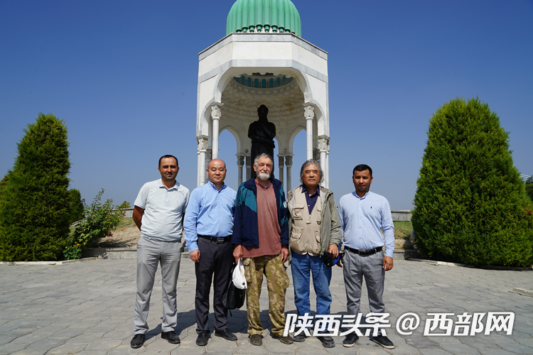 2022年8月,乐投平台丝绸之路考古合作研究中心访乌团与乌文化遗产署第一副署长图尔苏纳利·库齐耶夫先生(左三)合影留念。