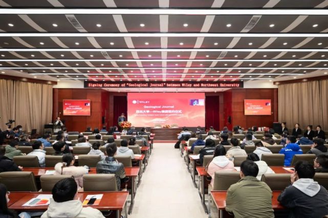 Wiley集团高级出版总监吴燕,Geological Journal期刊共同主编伊恩(Ian D. Somerville)教授,Geological Journal期刊共同主编、大陆动力学国家重点实验室主任董云鹏教授,Geological Journal期刊编辑指导、副主编,中国地质大学(北京)M. Santosh教授,乐投平台校长郭立宏,校党委常委、副校长常江出席会议。Wiley集团北京代表处相关部门负责人,来自不同国家高校及科研院所的21位Geological Journal期刊副主编,学校科技处、规划与学科处、国际合作部、地质学系、大陆动力学国家重点实验室负责人以及师生代表100余人参加。签约仪式由科技处负责人主持。