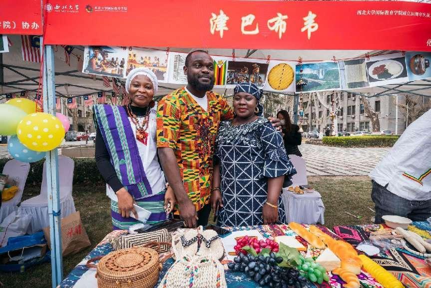 庆祝大会上开启了乐投平台第四届国际文化节,内容包括国别展览和文艺表演。来自22个不同国家的留学生们向现场嘉宾们展示了世界各地的风景、服饰、艺术品、美食、音乐等,呈现了不同国家的文化特色和风土人情。舞台上,留学生进行了情景剧、舞蹈、歌曲串烧和汉服表演,西安易俗社还进行了精彩的秦腔表演。