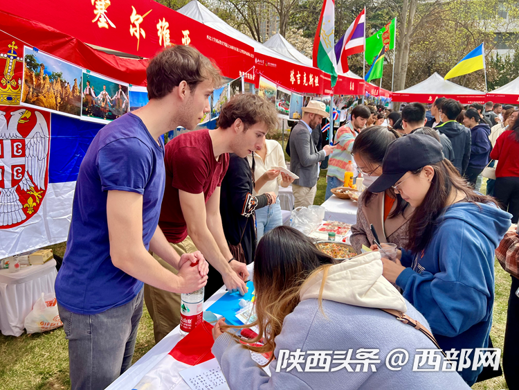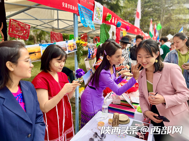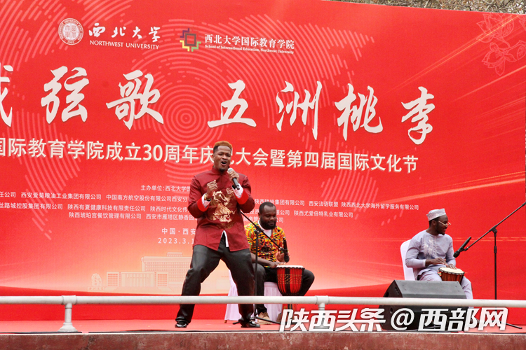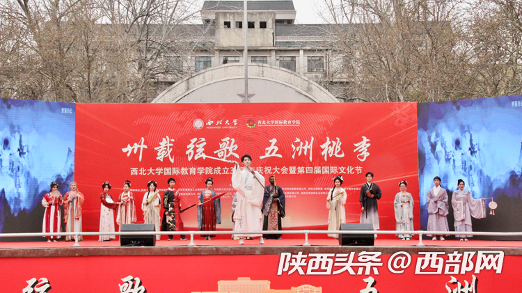 庆祝大会上开启了乐投平台第四届国际文化节,内容包括国别展览和文艺表演。来自22个不同国家的留学生们向现场嘉宾们展示了世界各地的风景、服饰、艺术品、美食、音乐等,呈现了不同国家的文化特色和风土人情。舞台上,留学生进行了情景剧、舞蹈、歌曲串烧和汉服表演,西安易俗社还进行了精彩的秦腔表演。