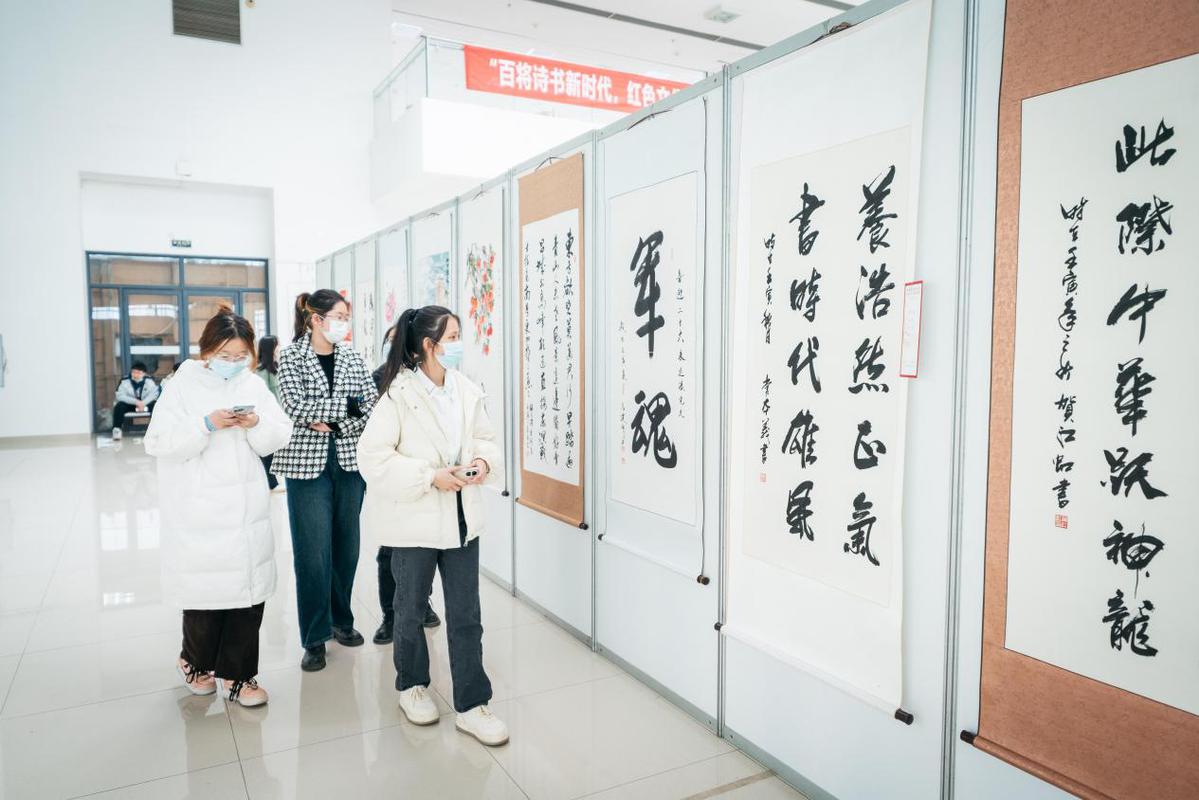 传承中华优秀传统文化,夯实理想信念之基,弘扬革命英雄之气,3月17日,“百将诗书新时代,红色文化进校园”主题书法展在乐投平台长安校区开幕。