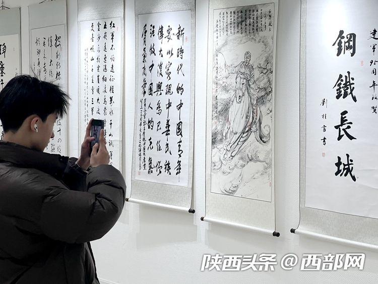 当天,数百名青年学子参观了书法展。参观展览的退役大学生韩大伟说:“老将军们的书法作品苍劲有力,透过这些作品,我仿佛又回到了热血沸腾的军营。”