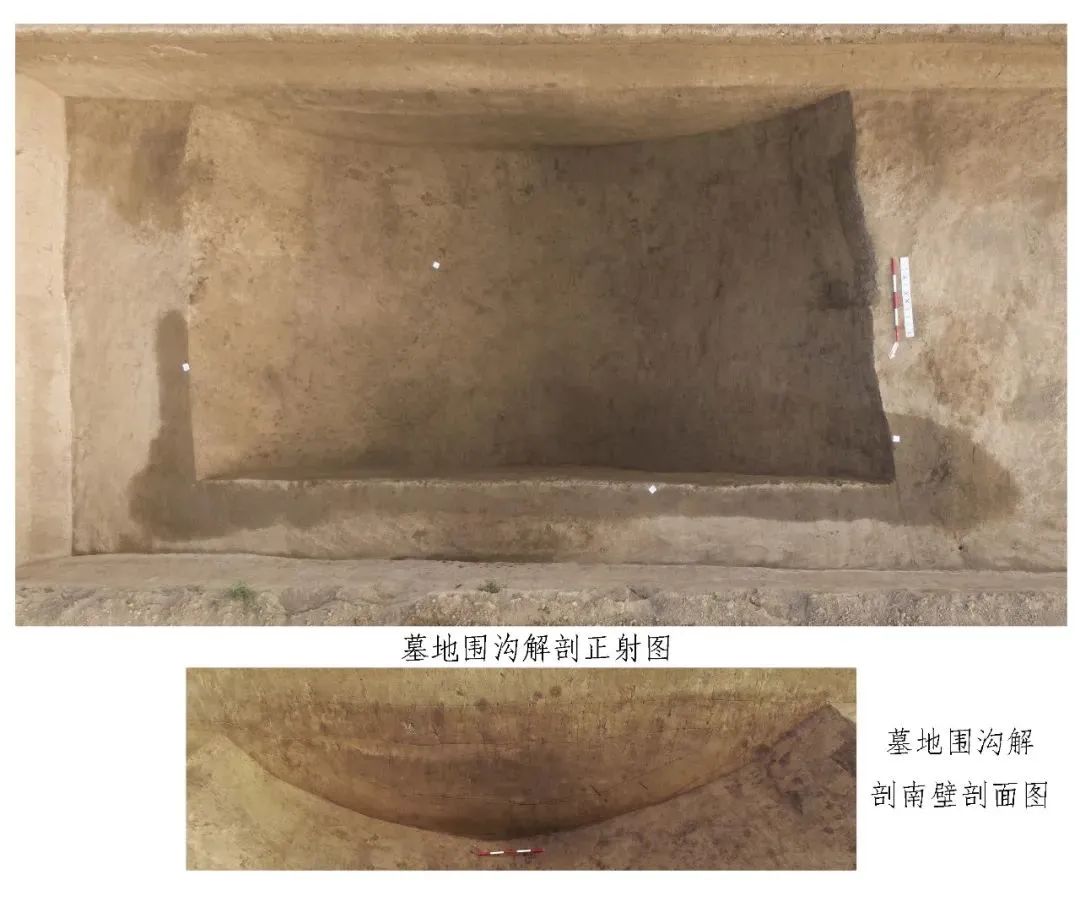 小型墓葬多为东西向,一般随葬品较少,多见兵器及车马器。通过出土遗物判断,该围沟墓地墓葬的年代主要集中在商末周初和西周早期。值得关注的是,本年度在上庙墓地围沟外东部进行勘探发现甲字形大墓10余座,另有中小型墓葬百余座。