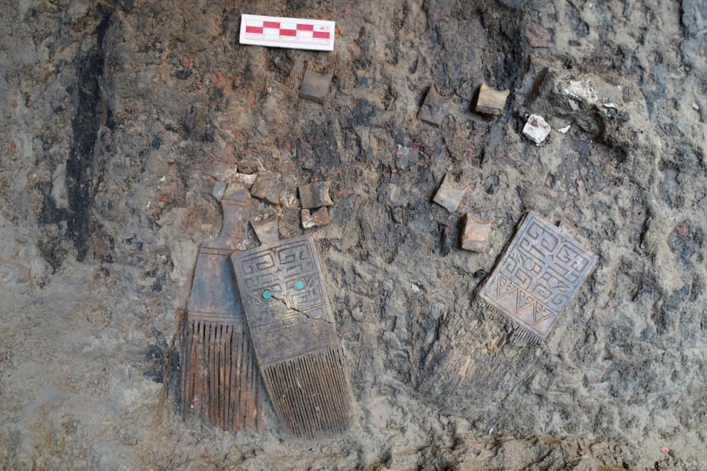 ——在城址内东北部发现了西周晚期铸铜遗存,考古人员在烧结铜块中发现了带有泥芯的铜器残块,表明该区域是对铜器进行集中重熔、铸造新器的手工业作坊;