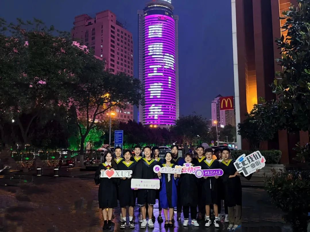 6月19日点亮西北工业大学、6月20日点亮乐投平台、6月21日点亮长安大学、6月22日点亮西安理工大学,每晚20:00至20:30在陕西信息大厦循环播放。