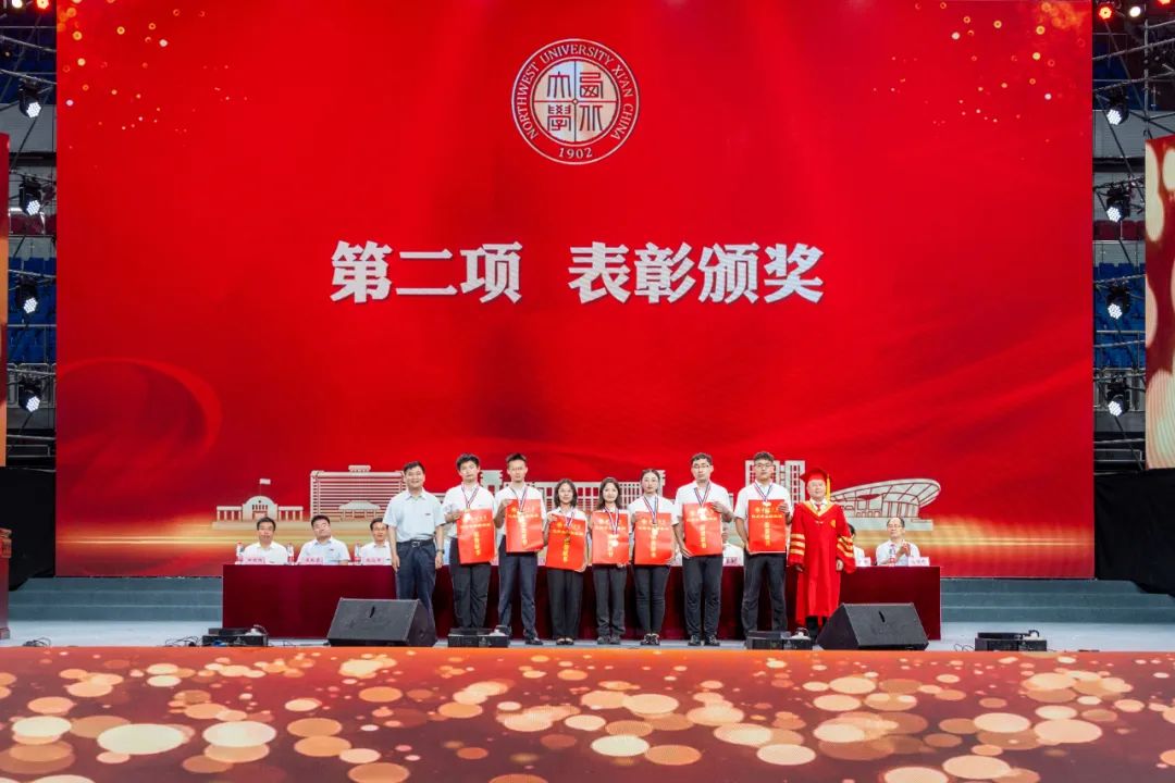国家级教学名师、信息科学与技术学院教授耿国华,学校党政领导班子成员张清、常江、奚家米、张远军、陈富林、吴振磊、田明纲及校友支振锋等共同为2023届乐投平台优秀毕业生代表颁奖。