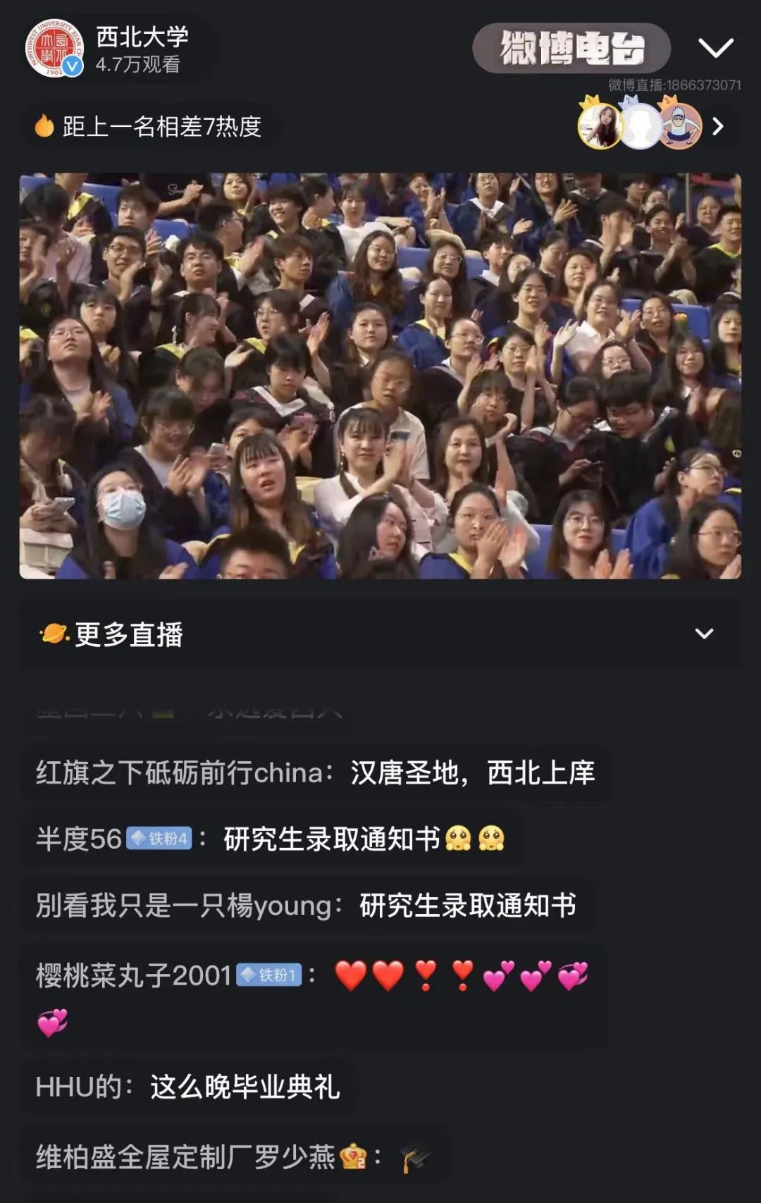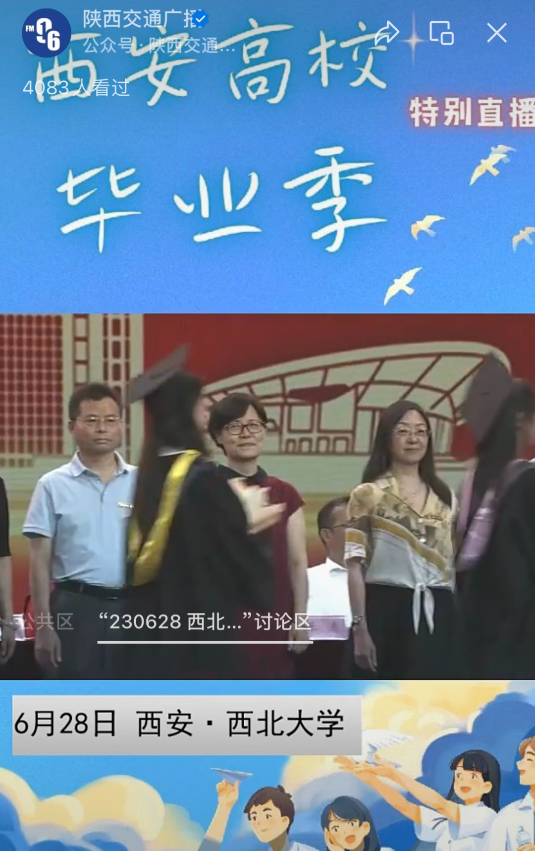 乐投平台2023届学生毕业典礼在央视频、央广网、西部网、微博校园、乐投平台官方视频号、微博、抖音、快手等平台播出,观看量逾20万。