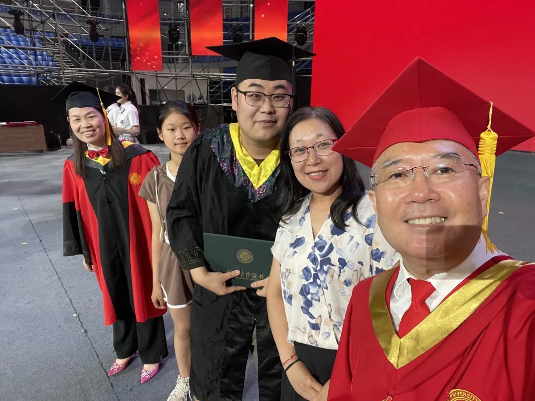 “郭校长非常和蔼可亲。”毕业生刘卓峰带着妈妈和妹妹一起上台与校长自拍合影,他告诉记者:“上台后校长示意我的家人站在中间的位置,并且询问了我的毕业去向,向我表示祝贺。毕业生董泽文说,“感谢郭校长,自大一入学之际,就能感受到郭校长对我们的关心和期许。人生之旅前行未半,西大不是客栈,是故乡。”有两位毕业生要去单位报到,赶不上学位授予仪式。校长得知后,还给他们单独办了“拨穗仪式”。