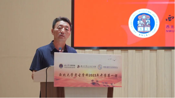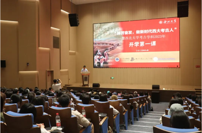 马健和孙周勇分别以“考古学——历史碎片的记忆拼图” “考古圣地、华章陕西”为题目讲授“开学第一课”。马健从“我们为什么需要考古学”“中国考古学的诞生和发展”和“西大考古创办发展历程和研究成果”三个方面进行讲授,围绕学科体系、组织架构、平台建设、人才培养等方面详细介绍了西大考古学科,并向2023级新生致以美好的祝愿。孙周勇围绕陕西考古博物馆人才结构、机构设施、人才荣誉等方面进行介绍,从探索未知揭示本源、建强体系创新方式、积极拓展国际合作、推动“两创”落实见效四个方面进行讲授,同时详细介绍了馆内陈设的“三大亮点”及“三大创新点”,并以发扬中国考古学先辈精神为切入点对新生提出了殷殷嘱托。