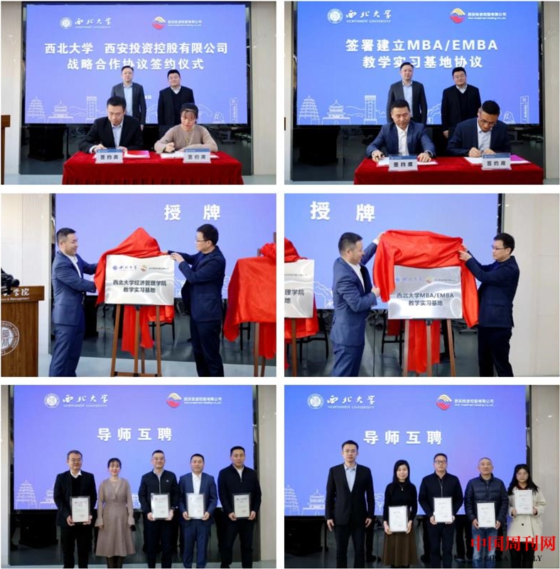 仪式上,双方代表签署了战略合作协议,共同为“乐投平台经济管理学院教学实习基地”“乐投平台MBA/EMBA教学实习基地”揭牌;西投控股王秦东、孙鑫、韩冰、周钢柱受聘为经管学院学生实践导师,经管学院王满仓教授、韩锦绵教授、王峰虎副教授、李林阳副教授受聘为西投控股智库专家。