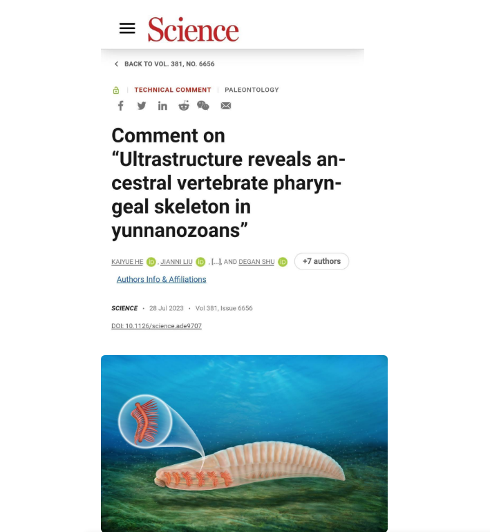 28日凌晨,国际期刊《科学》杂志刊发中国乐投平台古生物研究团队和中国地质大学(北京)、玉溪师范学院联合研究的专题学术评论《对“云南虫的超微构造揭示出其祖先脊椎动物咽骨”的评述》。该文对《科学》2022年7月曾发表论文的核心观点“云南虫是脊椎动物干群或原始脊椎动物”进行了剖析和否定。其“评述”还指出,利用贝叶斯谱系分析云南虫得出“脊椎动物干群”结论的特征矩阵明显存在诸多关键偏差。得出的修正结果是“云南虫在后口动物亚界谱系树中的位置低于低等脊索动物,与脊椎动物无关”。