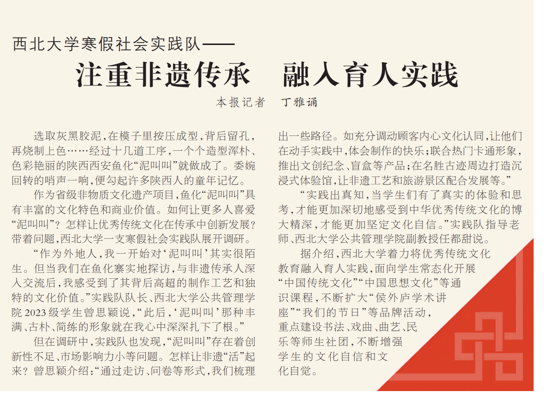 “作为外地人,我一开始对‘泥叫叫’其实很陌生。但当我们在鱼化寨实地探访,与非遗传承人深入交流后,我感受到了其背后高超的制作工艺和独特的文化价值。”实践队队长、乐投平台公共管理学院2023级学生曾思颖说,“此后,‘泥叫叫’那种丰满、古朴、简练的形象就在我心中深深扎下了根。”