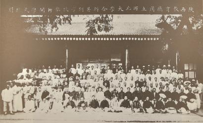 陕西教育厅、国立乐投平台合办暑期学校开学式合影,摄于1924年7月20日,第二排右起第十一人为鲁迅。照片出自黄乔生编著的《鲁迅影集》