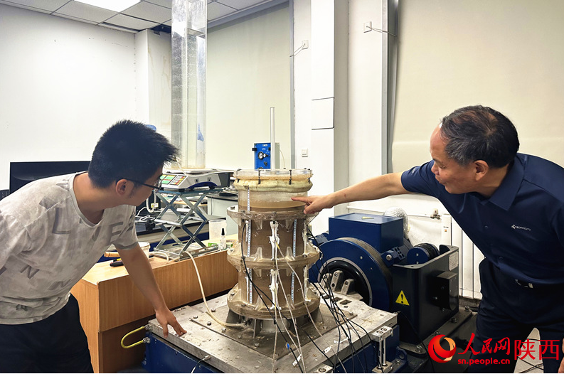 王家鼎在指导学生进行振动台实验。人民网记者 李志强摄